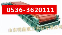 一、執行標準 JB/T 4040-1999 《重型板式給料機》 二、用途和使用范圍 GBZ型重型板式給料機廣泛應用在采礦、冶金、建材和煤炭等工業部門 。該機主要用于具有一定倉壓的料倉和漏斗下面,將各種大容重物料短距離均勻、連續的輸送給各種破碎、篩分和運輸設備,特別是用在初碎以下更為合適。它不僅合理處理粗物料,對細粒物料也同樣適應。可在惡劣的環境中完成繁重的工作,對物料的粒度成份的變化,溫度、粘度、冰霜、雨雪的影響或冰結的物料都有較大的適應性,給料量均勻準確可靠。在使用過程中不允許卸空物料及大塊物料直接沖擊鏈板表面,更不允許在鏈板表面進行爆破。 安裝傾角為0~25°,傳動裝置可左裝或右裝,在物料運行方向右側為右傳動,反之為左傳動。 三、特點 1.給料機的給料速度按下列系列選取,其偏差不得超過±10%: 2.傾斜安裝時附有防止輸送鏈逆轉的制動裝置。 3.驅動裝置采用直交行星串聯組合式減速機傳動,重量輕、機械效率高、壽命長、結構緊湊、占地空間小。 4.主軸裝置采用無鍵光軸,主軸與鏈輪、星輪均采用脹套聯接方式,其機器的安裝、拆卸、維修十分方便。 5.鏈板裝置采用雙圓弧搭接結構,保證使用過程中不漏料。 6.采用坦克鏈作傳動鏈,具有節距誤差小,無需潤滑,安裝維修方便,具有良好的互換性和較長的使用壽命。 7.應用帶導向的支重輪和尾軸上的改向光輪嵌入鏈環的內鏈環之間的結構,****地解決了跑偏這一問題。 采用復合彈簧式緩沖拉緊機構,減少了沖擊破壞,延長了整機的使用壽命。